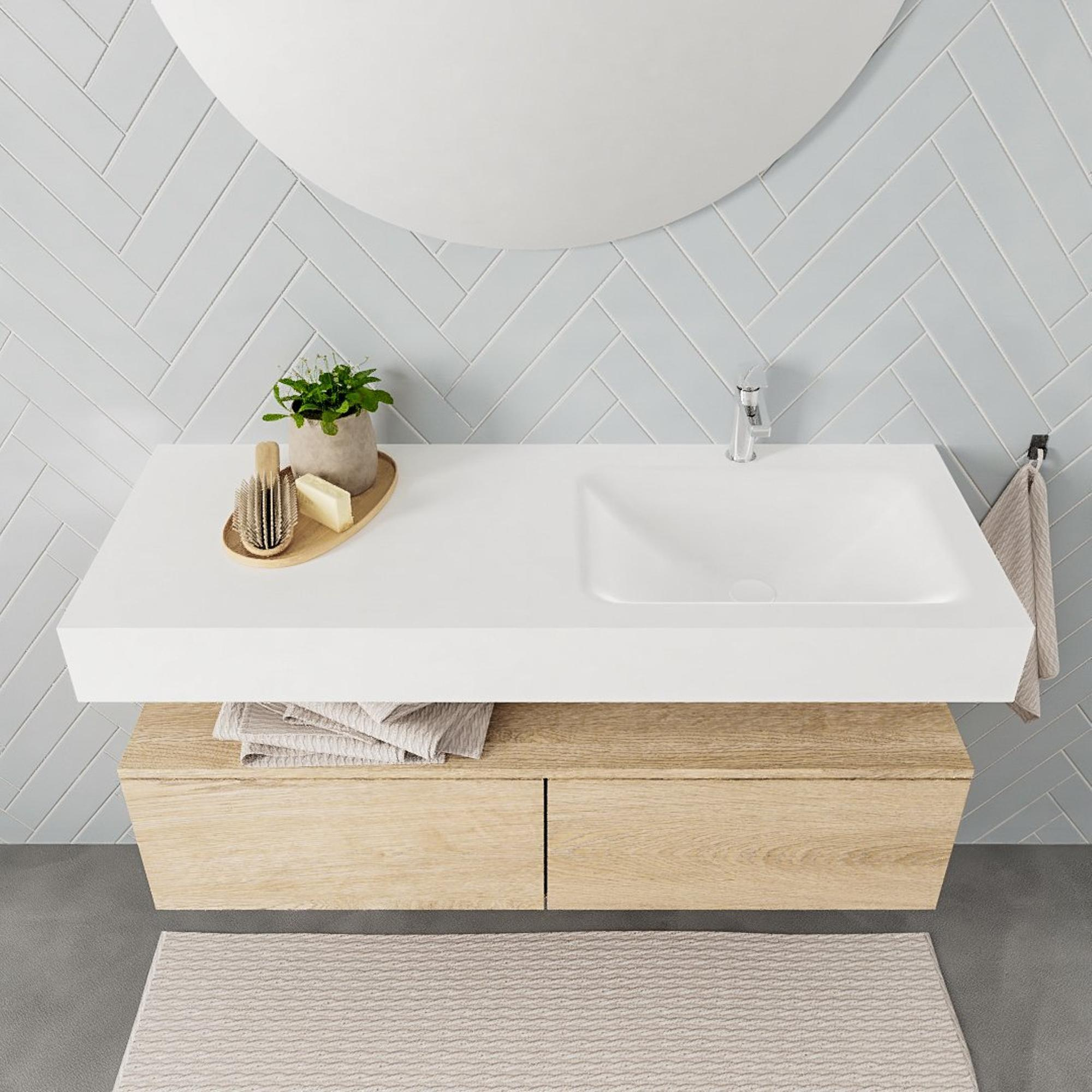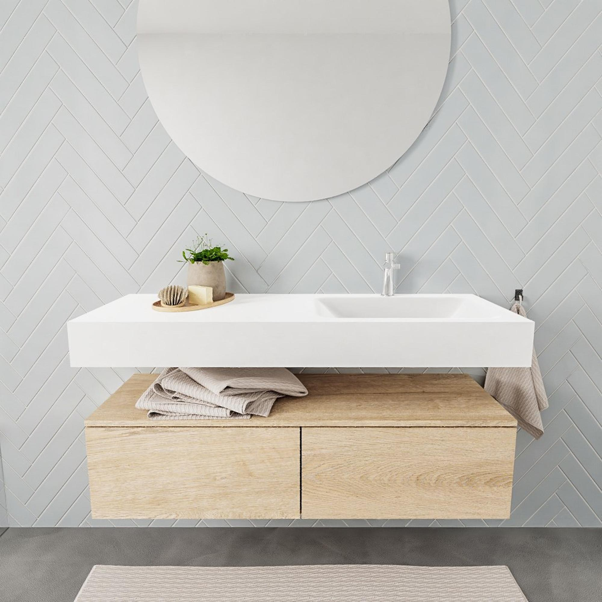 MONDIAZ ALAN 120cm - onderkast - washed oak - 2 lades - vrijhangende wastafel - wasbak rechts - 1 kraangat - talc