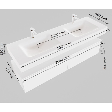 MONDIAZ ALAN 200cm - onderkast - 2 lades - vrijhangende wastafel - 2 wasbakken - 0 kraangaten - talc