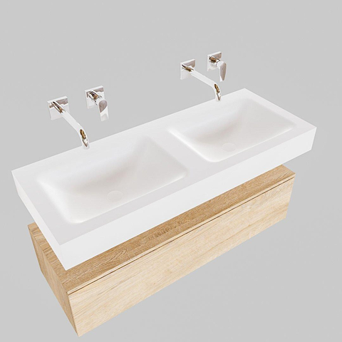 MONDIAZ ALAN 120cm - onderkast - washed oak - 1 lade - vrijhangende wastafel - 2 wasbakken - 0 kraangaten - talc