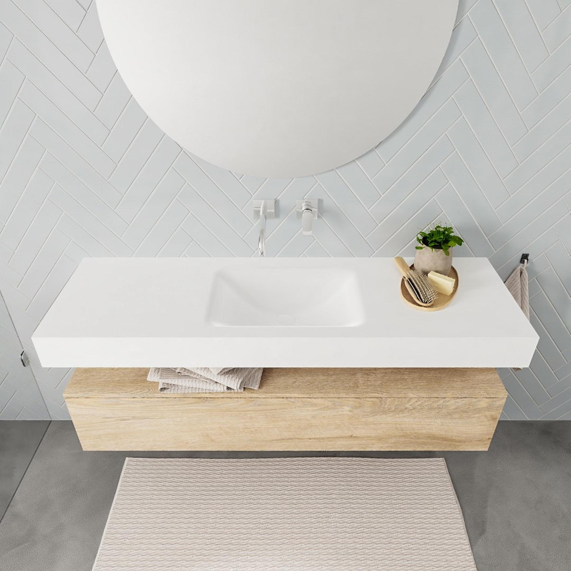 MONDIAZ ALAN 150cm - onderkast - washed oak - 1 lade - vrijhangende wastafel - wasbak midden - 0 kraangaten - talc