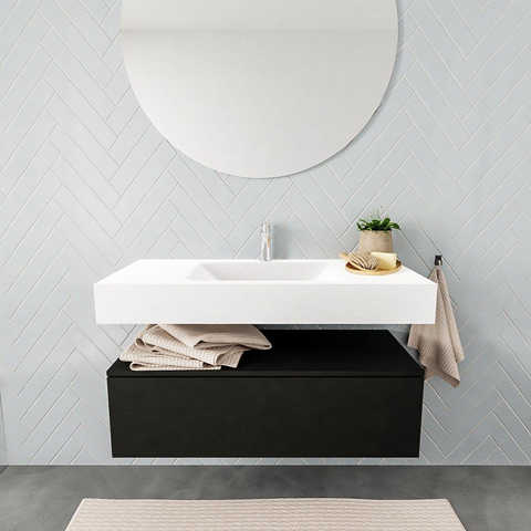 Met 1 lade en een vrijhangende wastafel biedt de MONDIAZ ALAN 100cm onderkast niet alleen stijl, maar ook functionaliteit. De lade zorgt voor georganiseerde opslag van toiletartikelen en handdoeken, terwijl de vrijhangende wastafel een eigentijdse uitstraling geeft en gemakkelijk schoon te maken is. Het kraangat in het midden maakt het eenvoudig om een kraan te installeren, waardoor deze onderkast zowel praktisch als stijlvol is.