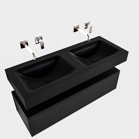 MONDIAZ ALAN 120cm - onderkast - 1 lade - vrijhangende wastafel - 2 wasbakken - 0 kraangaten - urban