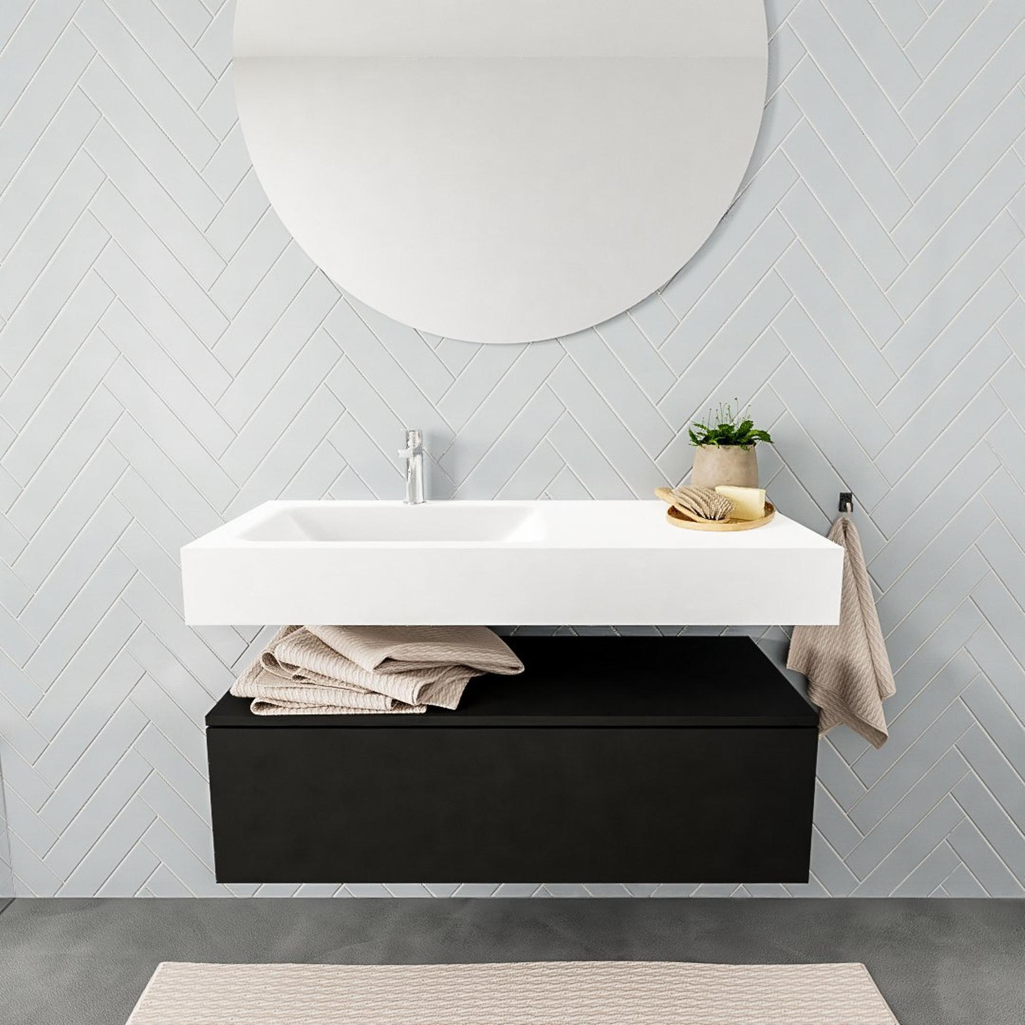 MONDIAZ ALAN 100cm - onderkast - urban - 1 lade - vrijhangende wastafel - wasbak links - 1 kraangat - talc