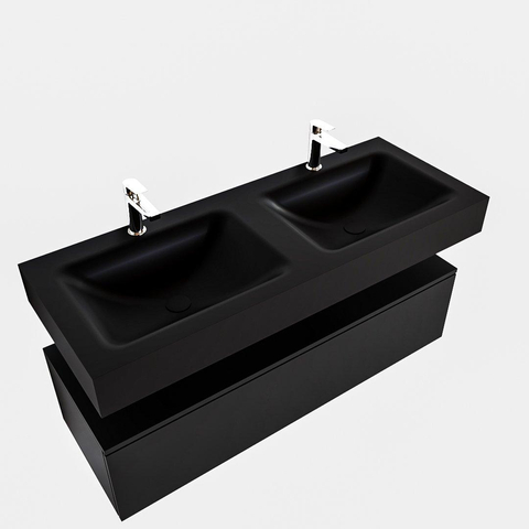 MONDIAZ ALAN 120cm - onderkast - 1 lade - vrijhangende wastafel - 2 wasbakken - 2 kraangaten - urban