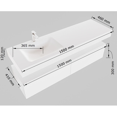 MONDIAZ ALAN 150cm - onderkast - 2 lades - vrijhangende wastafel - wasbak links - 0 kraangaten - urban