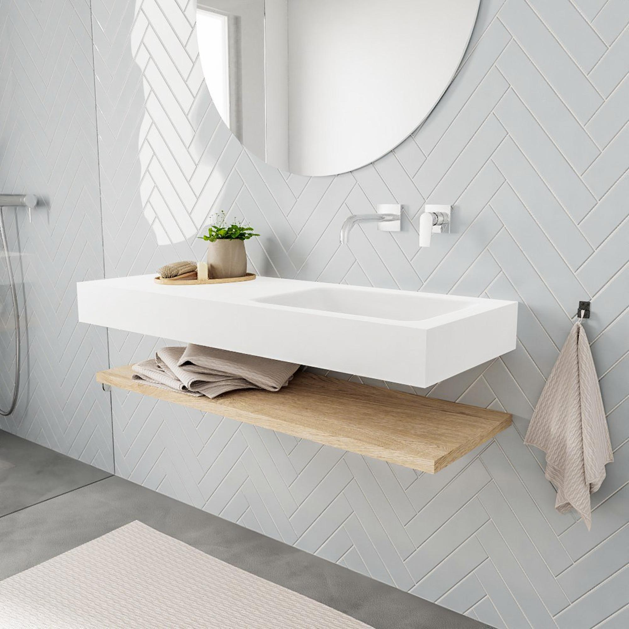 De MONDIAZ ALAN 120cm Badkamermeubelset is ontworpen met oog voor stijl en functionaliteit. Het washed oak materiaal geeft een warme en luxe uitstraling aan de badkamer. De vrijhangende wastafel zorgt voor een ruimtelijk gevoel en de wasbak rechts biedt handige opbergmogelijkheden. Dit meubelstuk is perfect voor wie op zoek is naar een eigentijdse en elegante toevoeging aan de badkamer.