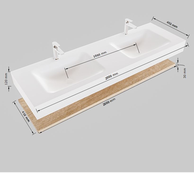De MONDIAZ ALAN 200cm badkamermeubelset straalt luxe uit in elke centimeter. Het washed oak materiaal geeft een warme en natuurlijke uitstraling aan de ruimte, terwijl de vrijhangende wastafel en twee wasbakken zorgen voor een ruimtebesparende oplossing met een vleugje elegantie. De twee kraangaten bieden de mogelijkheid om jouw favoriete kranen toe te voegen, waardoor je de badkamer naar jouw persoonlijke smaak kunt aanpassen.