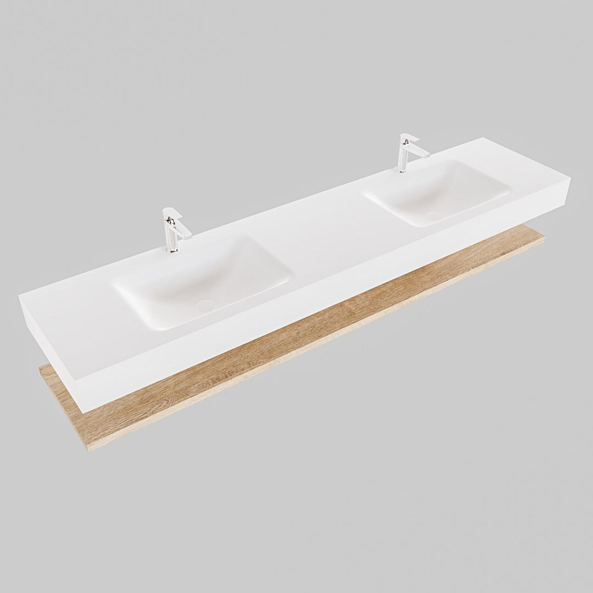 MONDIAZ ALAN 200cm - Badkamermeubelset - planchet - washed oak - vrijhangende wastafel - 2 wasbakken - 2 kraangaten - talc