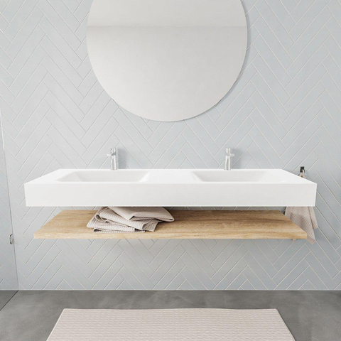 MONDIAZ ALAN 150cm - Badkamermeubelset - planchet - washed oak - vrijhangende wastafel - 2 wasbakken - 2 kraangaten - talc