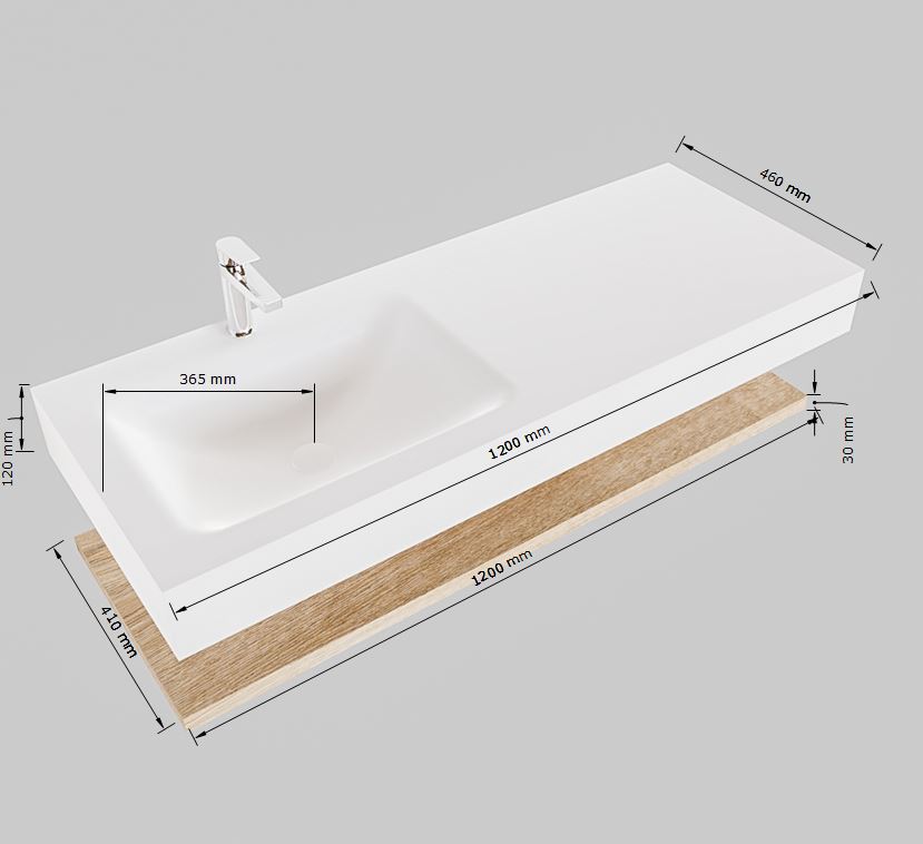 - Vrijhangende wastafel met wasbak links