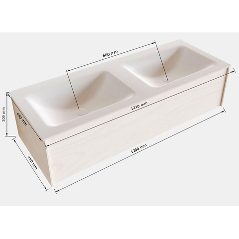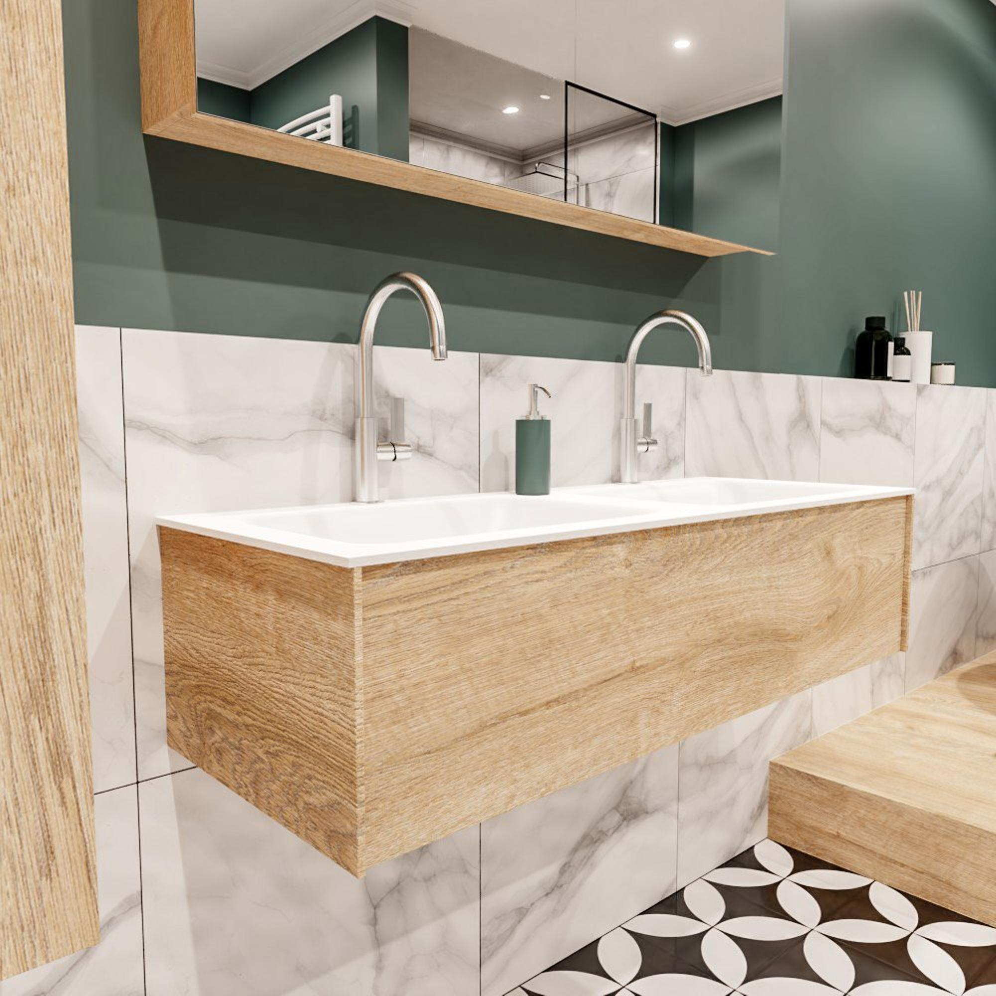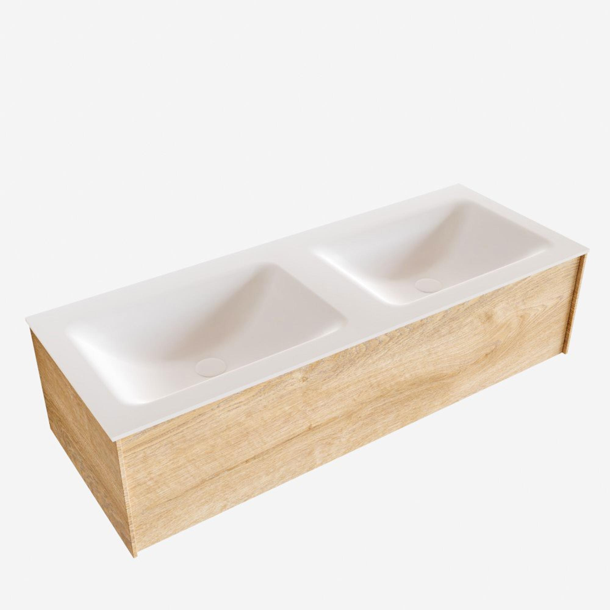 MONDIAZ LUSH Badkamermeubelset - 120cm - 1 lade - wastafel cloud - 2 wasbakken - 2 kraangaten - washed oak