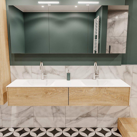 MONDIAZ LUSH Badkamermeubelset - 180cm - 2 lades - wastafel cloud - 2 wasbakken - 2 kraangaten - washed oak