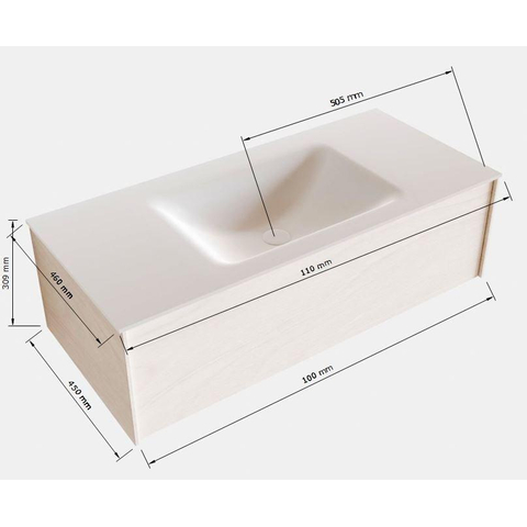 MONDIAZ LUSH Badkamermeubelset - 100cm - 1 lade - wastafel cloud - wasbak midden - 0 kraangaten - washed oak