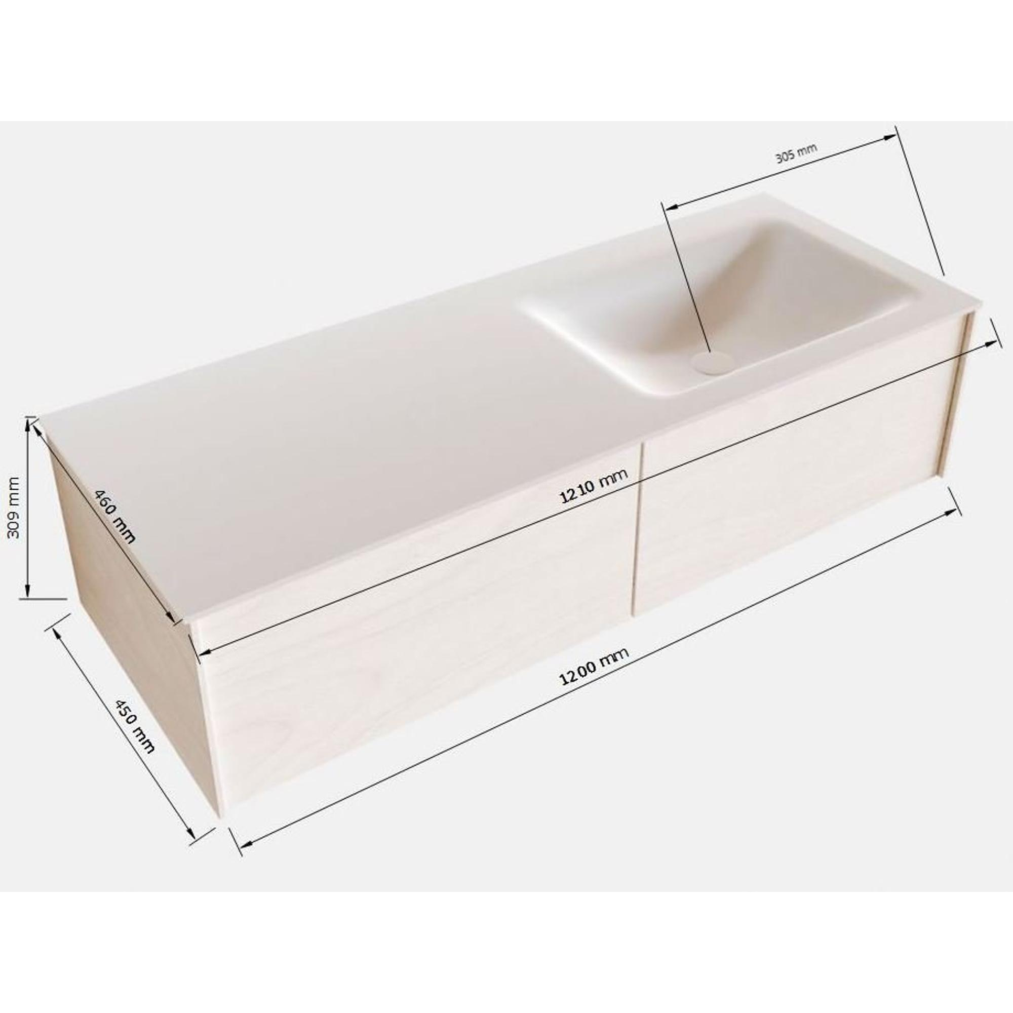 MONDIAZ LUSH Badkamermeubelset - 120cm - 2 lades - wastafel cloud - wasbak rechts - 0 kraangaten - washed oak