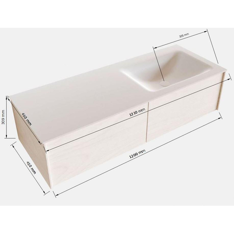 Naast zijn esthetische aantrekkingskracht is de MONDIAZ LUSH Badkamermeubelset ook zeer praktisch in gebruik. Met 2 ruime lades biedt dit meubelstuk voldoende opbergruimte voor al uw badkamerbenodigdheden. De wasbak aan de rechterkant zorgt voor een efficiënte indeling van de ruimte, terwijl de afwezigheid van kraangaten een strak en opgeruimd uiterlijk garandeert.