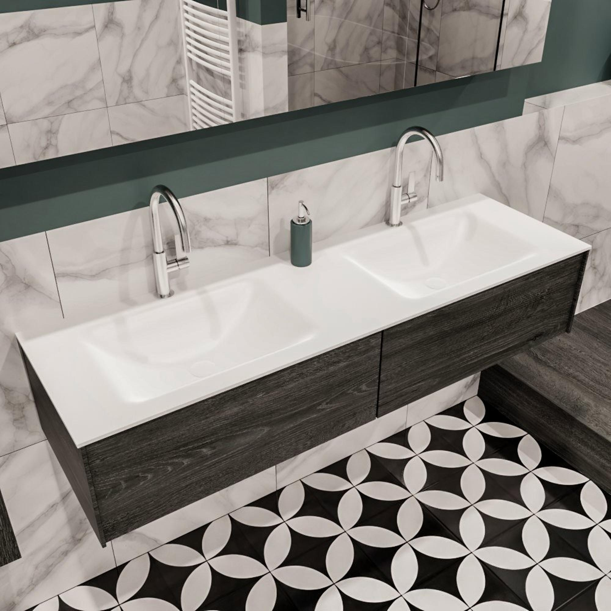 Niet alleen is dit badkamermeubelset esthetisch aantrekkelijk, maar het is ook uiterst functioneel. Met 2 ruime lades biedt het voldoende opbergruimte voor al jouw badkamerbenodigdheden. De 2 wasbakken en kraangaten maken het mogelijk om comfortabel met twee personen tegelijkertijd gebruik te maken van de wastafel, waardoor het perfect is voor drukke ochtenden.