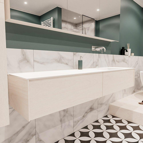 MONDIAZ LUSH Badkamermeubelset - 180cm - 2 lades - wastafel cloud - wasbak rechts - 0 kraangaten - underlayment