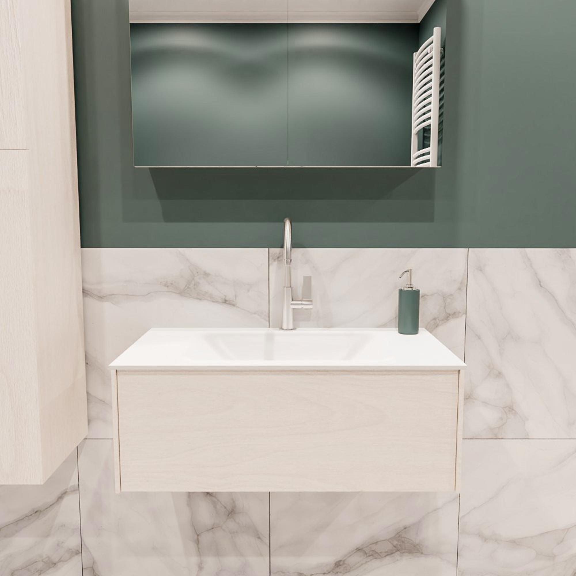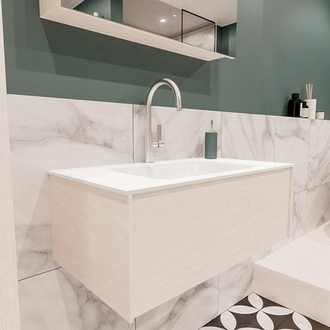 MONDIAZ LUSH Badkamermeubelset - 80cm - 1 lade - wastafel cloud - wasbak midden - 1 kraangat - underlayment