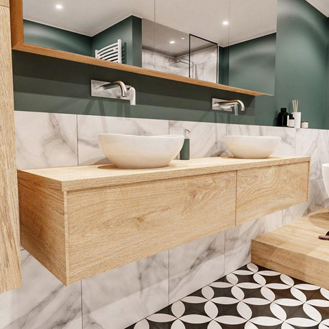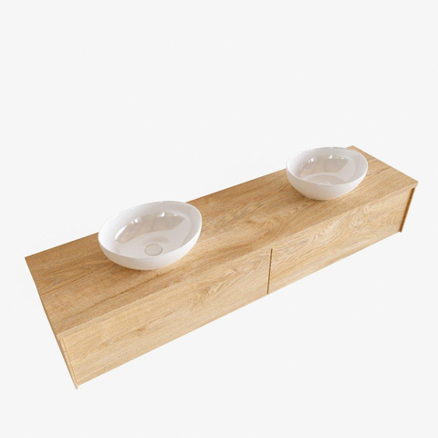 MONDIAZ LUSH Badkamermeubelset - 180cm - 2 lades - wastafel BARCO - 2 wasbakken - 0 kraangaten - washed oak