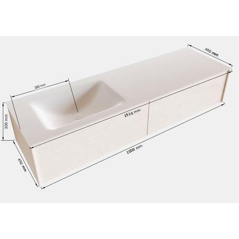 MONDIAZ LUSH Badkamermeubelset - 150cm - 2 lades - wastafel cloud - wasbak links - 0 kraangaten - underlayment