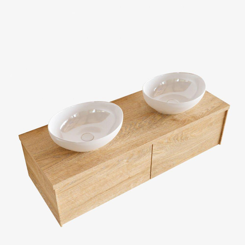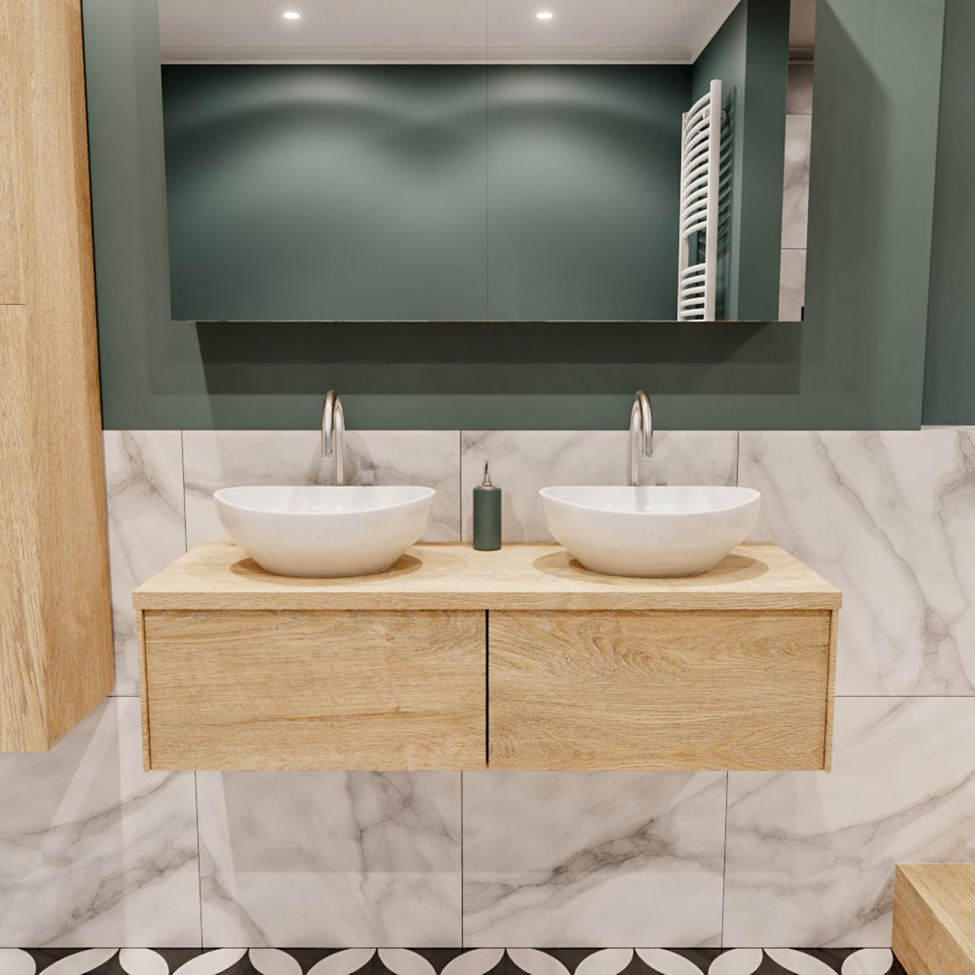 MONDIAZ LUSH Badkamermeubelset - 120cm - 2 lades - wastafel BARCO - 2 wasbakken - 2 kraangaten - washed oak