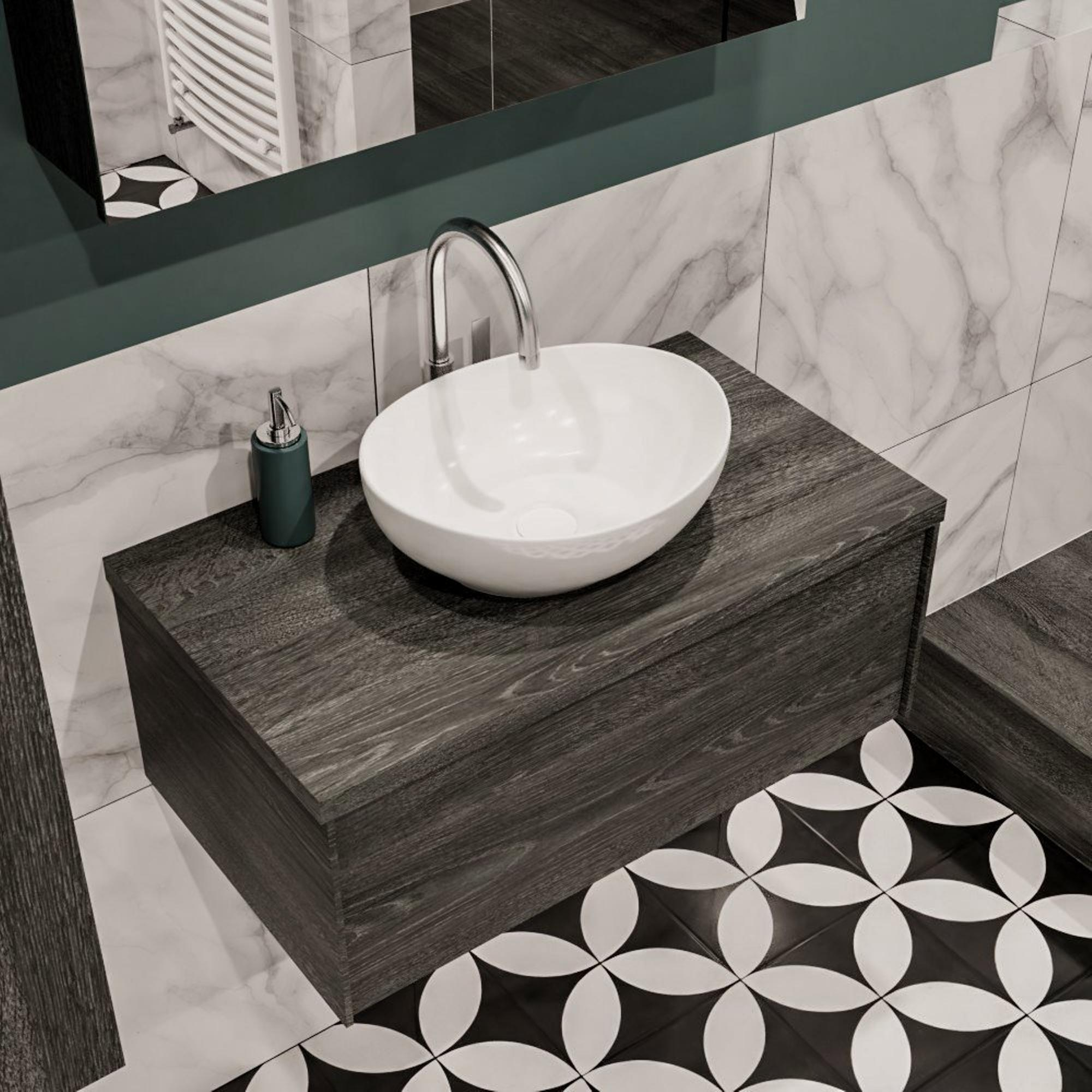 De MONDIAZ LUSH Badkamermeubelset straalt stijl uit in elke hoek van de badkamer. Het slanke ontwerp en de antracietkleur geven een eigentijdse uitstraling aan de ruimte. De combinatie van de lade en de wastafel met het kraangat in het midden creëert een harmonieus geheel dat de badkamer een luxe uitstraling geeft.