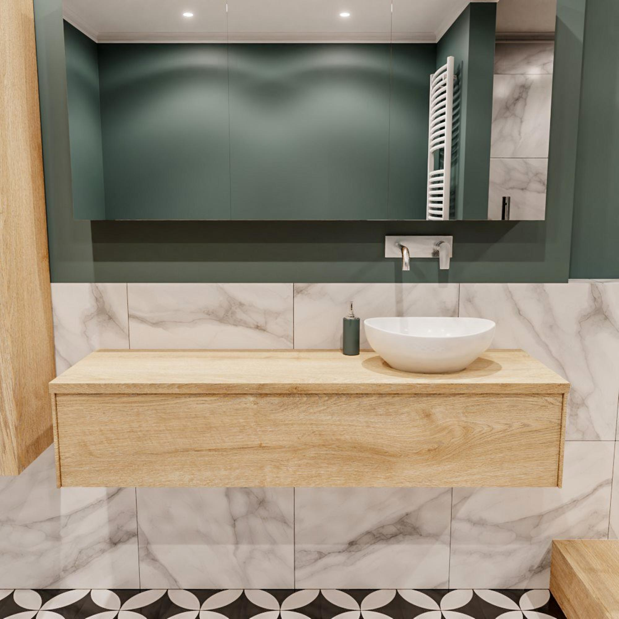 MONDIAZ LUSH Badkamermeubelset - 150cm - 1 lade - wastafel BARCO - wasbak rechts - 0 kraangaten - washed oak