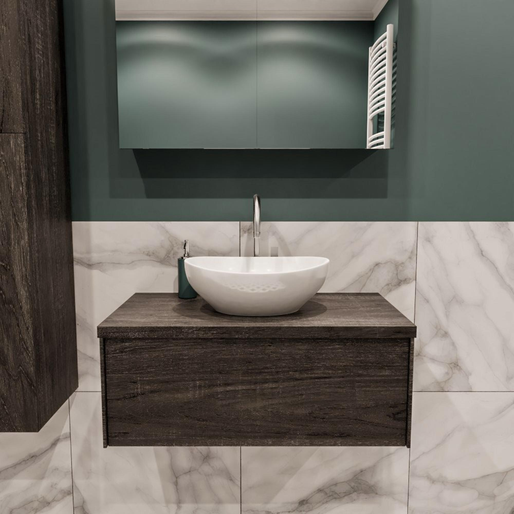 MONDIAZ LUSH Badkamermeubelset - 80cm - 1 lade - wastafel BARCO - wasbak midden - 1 kraangat - dark brown
