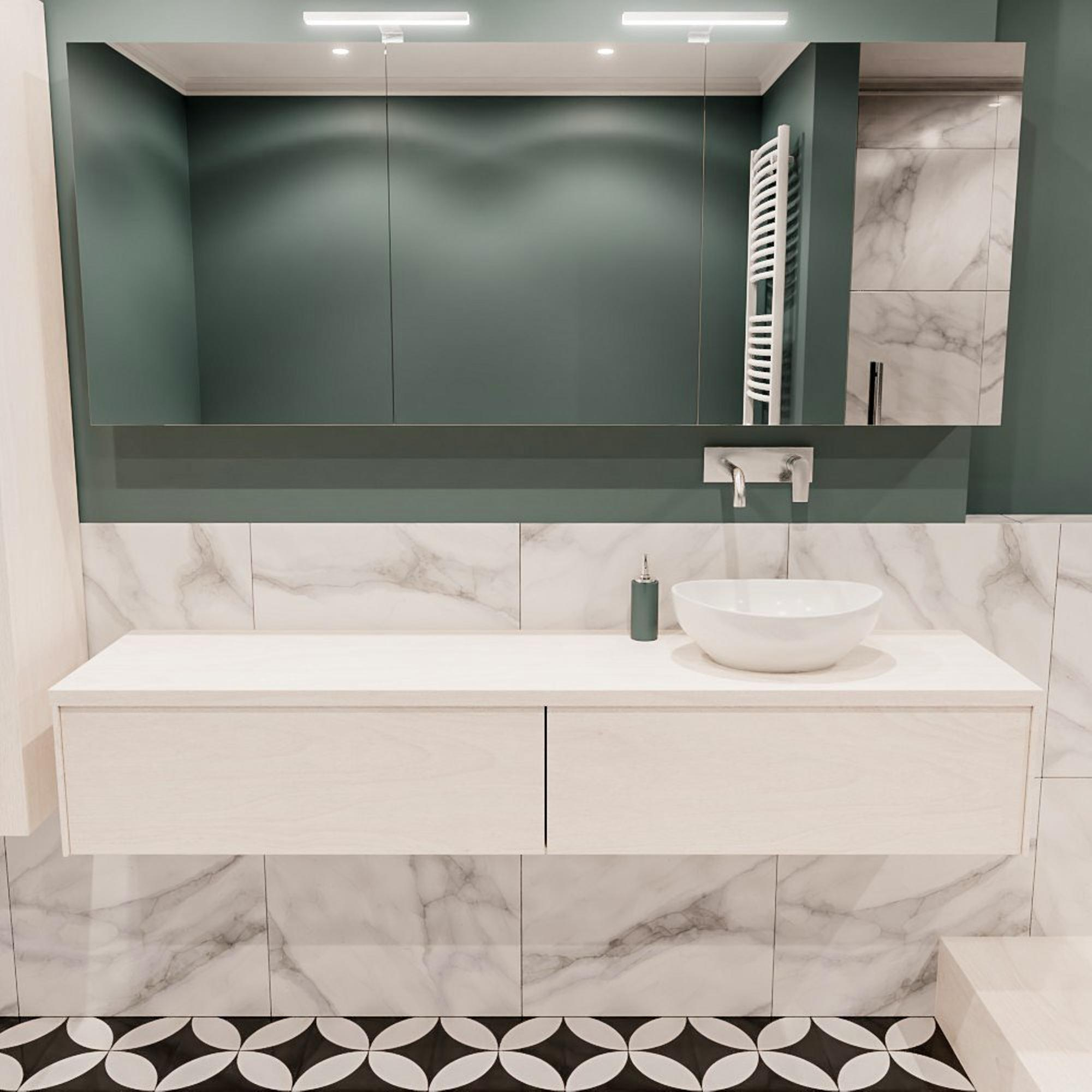 MONDIAZ LUSH Badkamermeubelset - 180cm - 2 lades - wastafel BARCO - wasbak rechts - 0 kraangaten - underlayment