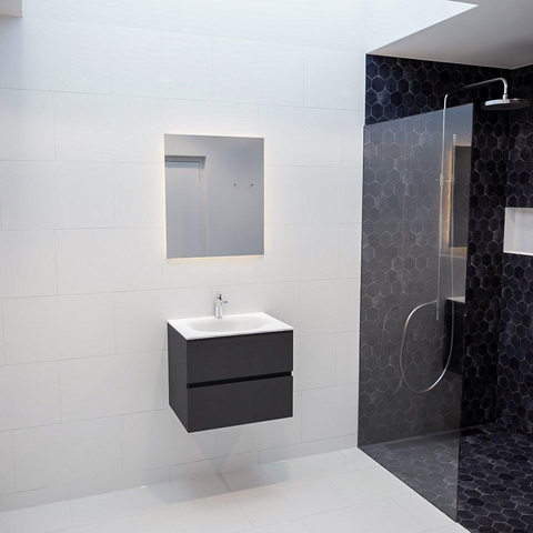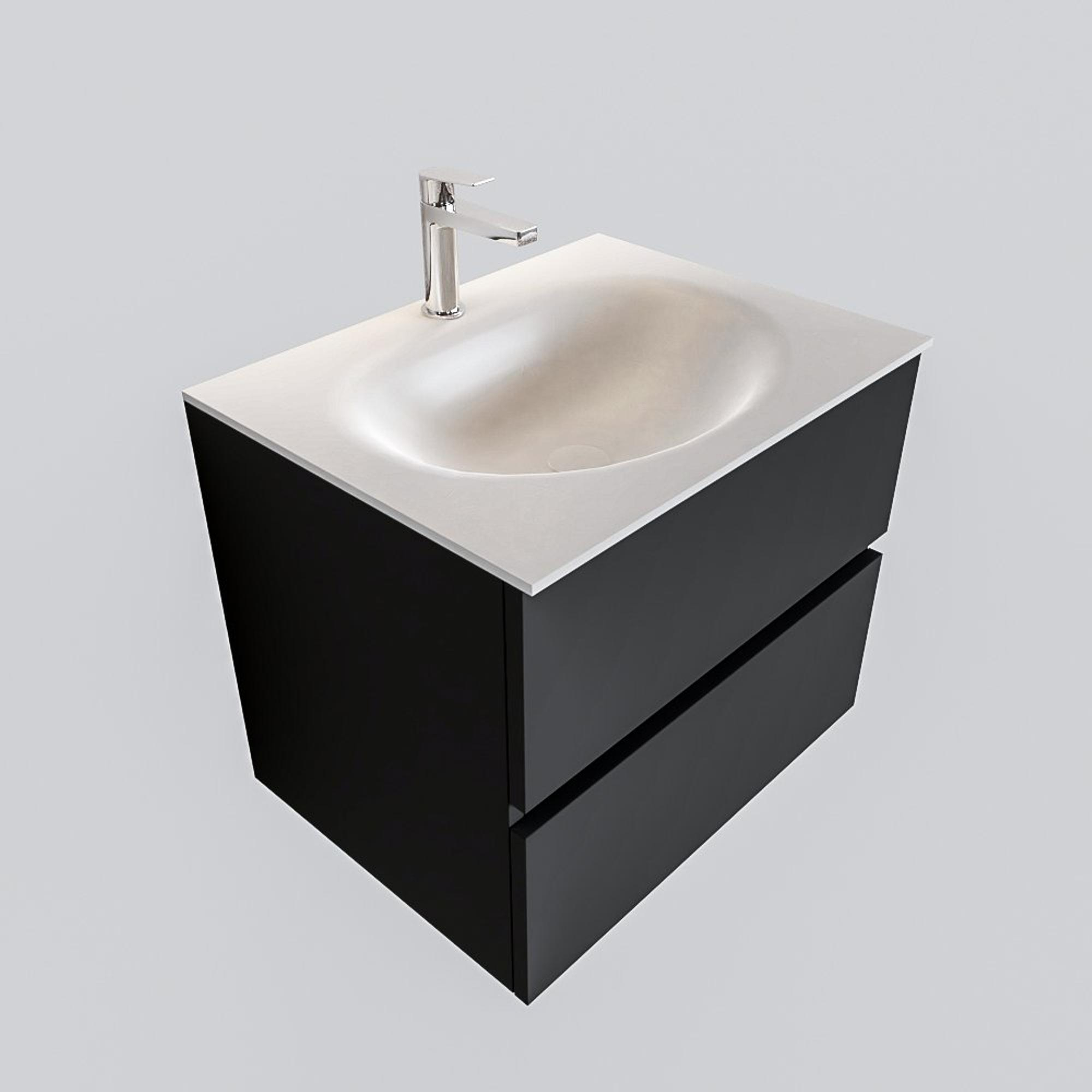 MONDIAZ VICA Badkamermeubelset - 60cm - 2 lades - wasbak Moon midden - 1 kraangat - solid surface darkgrey