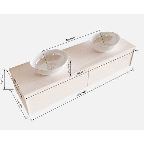 MONDIAZ LUSH Badkamermeubelset - 180cm - 2 lades - wastafel BARCO - 2 wasbakken - 2 kraangaten - underlayment
