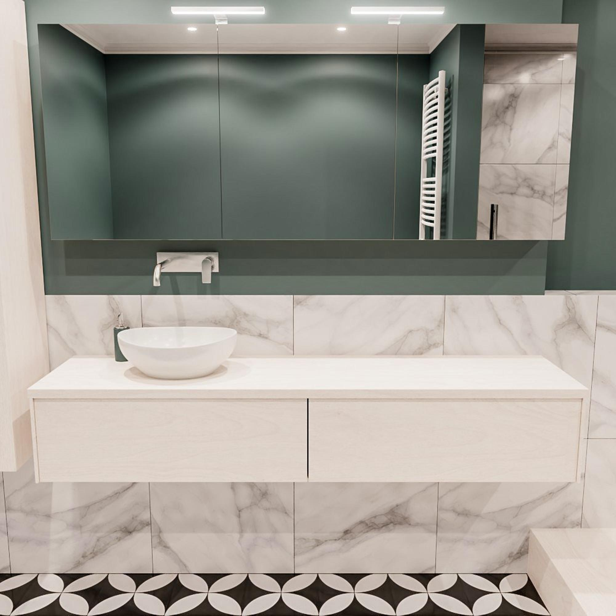 MONDIAZ LUSH Badkamermeubelset - 180cm - 2 lades - wastafel BARCO - wasbak links - 0 kraangaten - underlayment
