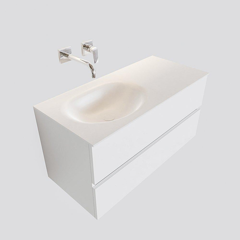 MONDIAZ VICA Badkamermeubelset - 100cm - 2 lades - wasbak Moon links - 0 kraangaten - solid surface talc