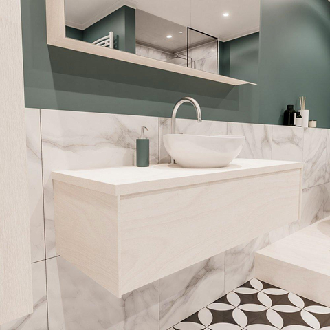 MONDIAZ LUSH Badkamermeubelset - 120cm - 1 lade - wastafel BARCO - wasbak midden - 1 kraangat - underlayment