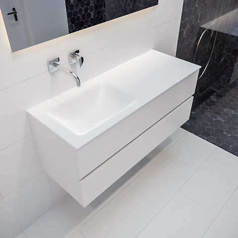 MONDIAZ VICA Badkamermeubelset - 120cm - 2 lades - wasbak Cloud links - 0 kraangaten - solid surface talc