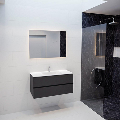 MONDIAZ VICA Badkamermeubelset - 100cm - 2 lades - wasbak Cloud midden - 1 kraangat - solid surface darkgrey
