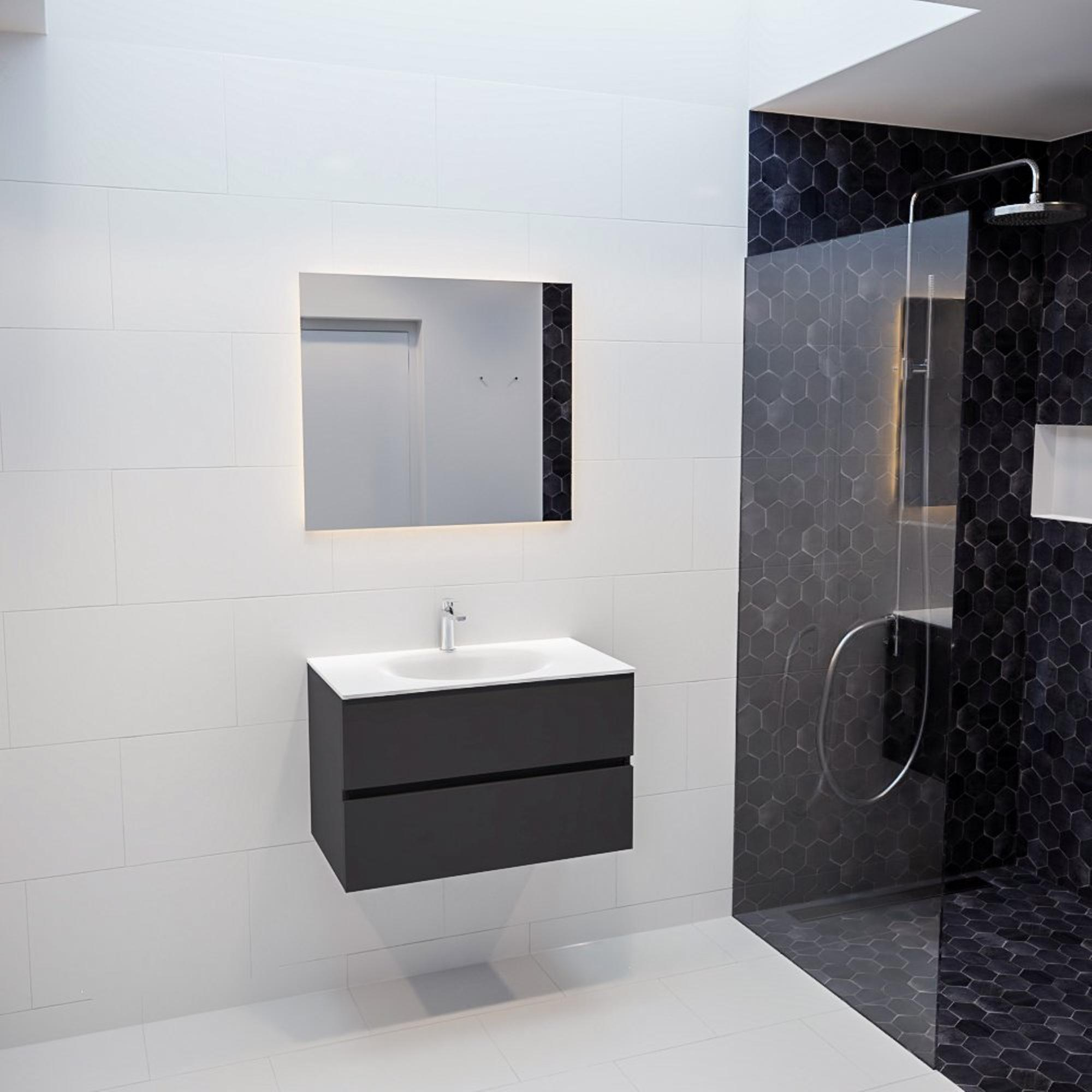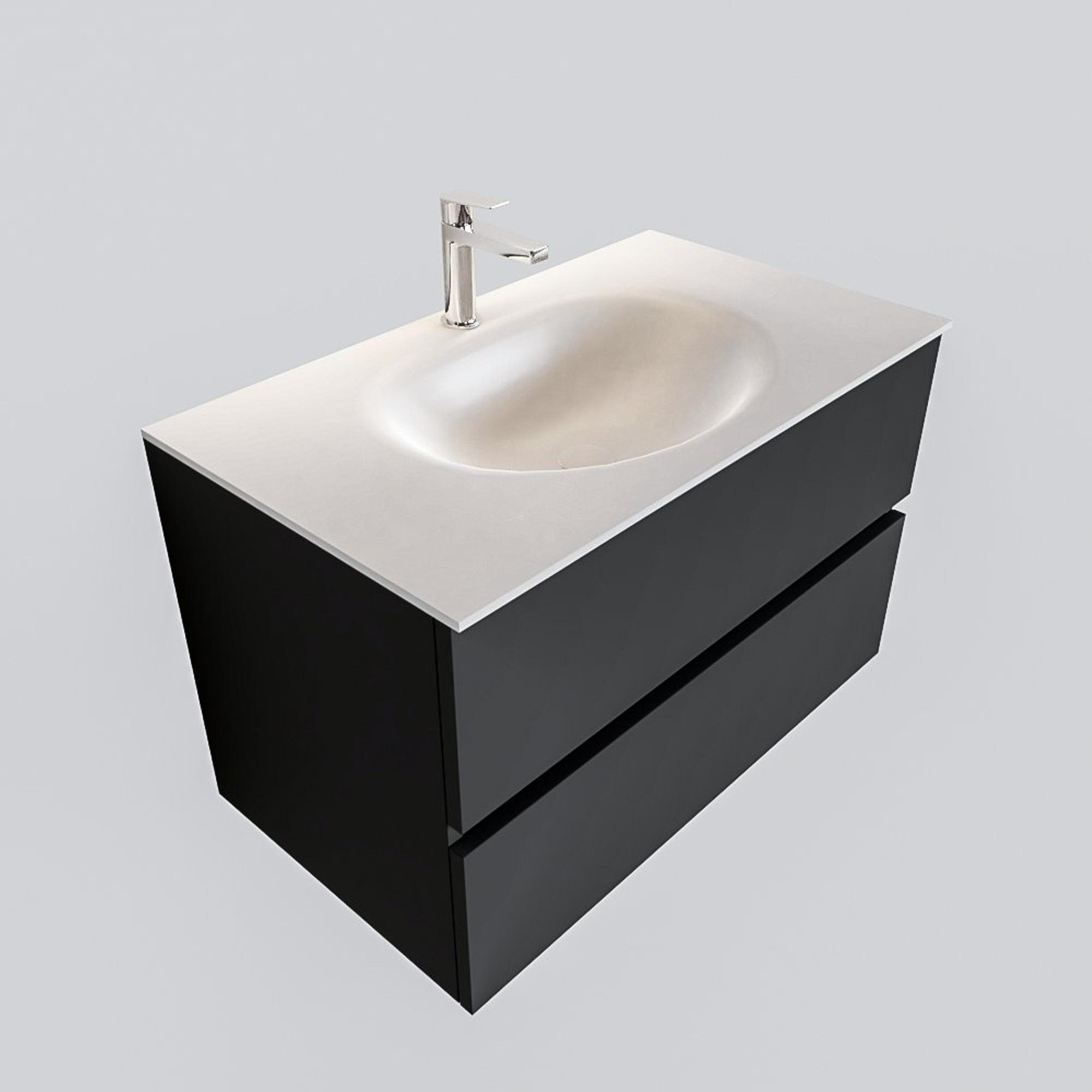 MONDIAZ VICA Badkamermeubelset - 80cm - 2 lades - wasbak Moon midden - 1 kraangat - solid surface darkgrey