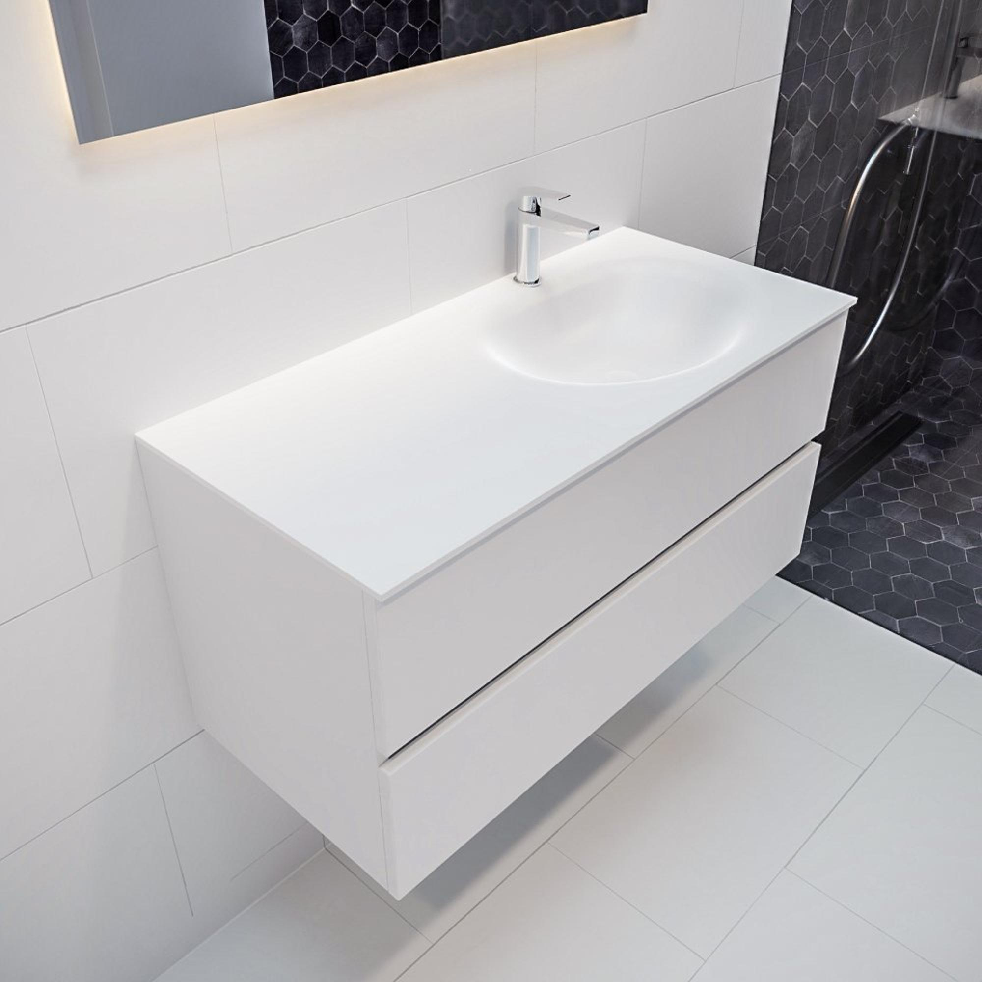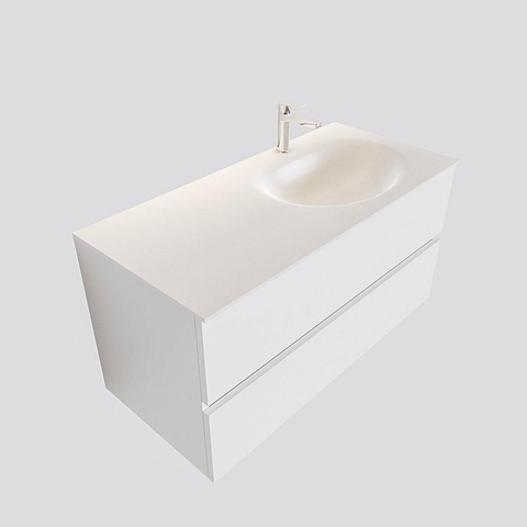 MONDIAZ VICA Badkamermeubelset - 100cm - 2 lades - wasbak Moon rechts - 1 kraangat - solid surface talc