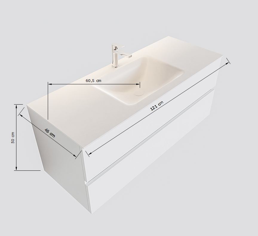 MONDIAZ VICA Badkamermeubelset - 120cm - 2 lades - wasbak Moon midden - 1 kraangat - solid surface talc