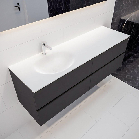 MONDIAZ VICA Badkamermeubelset - 150cm - 4 lades - wasbak Moon links - 1 kraangat - solid surface darkgrey