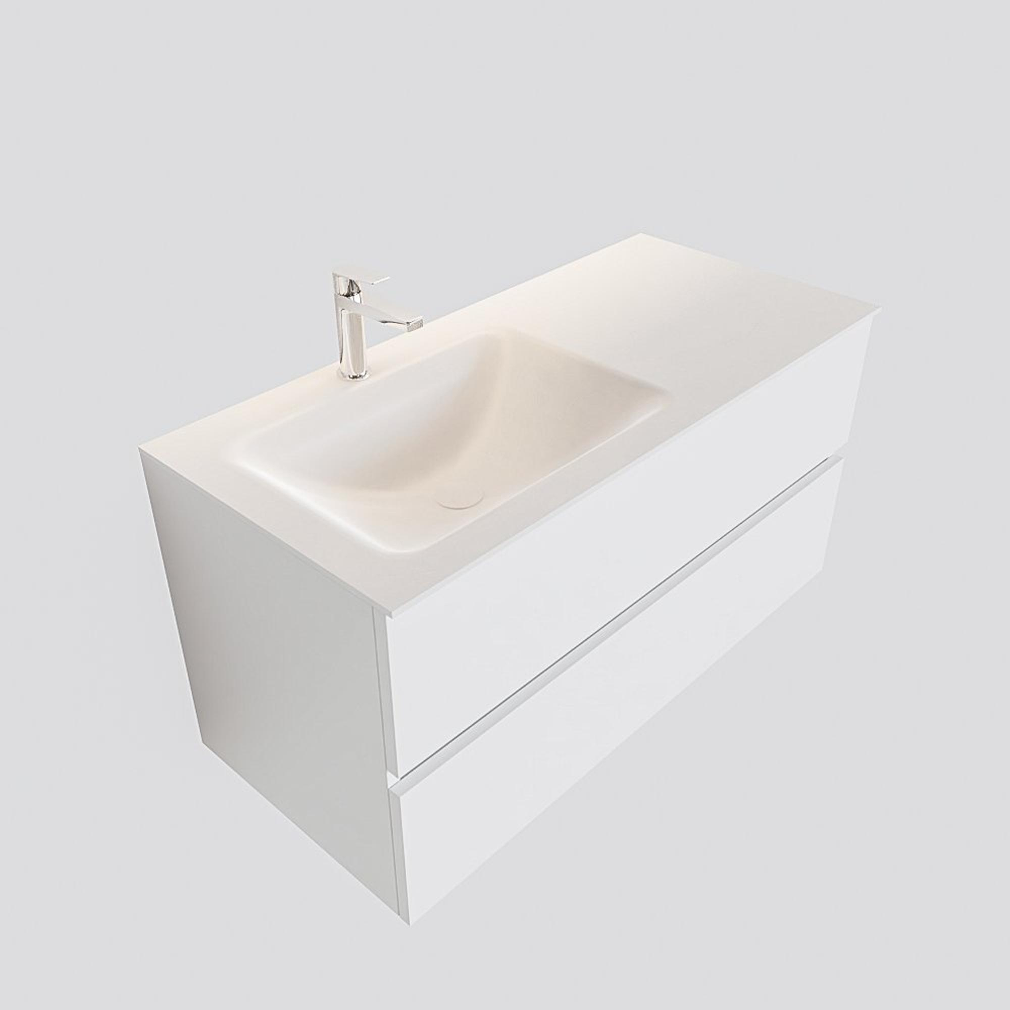 MONDIAZ VICA Badkamermeubelset - 100cm - 2 lades - wasbak Cloud links - 1 kraangat - solid surface talc