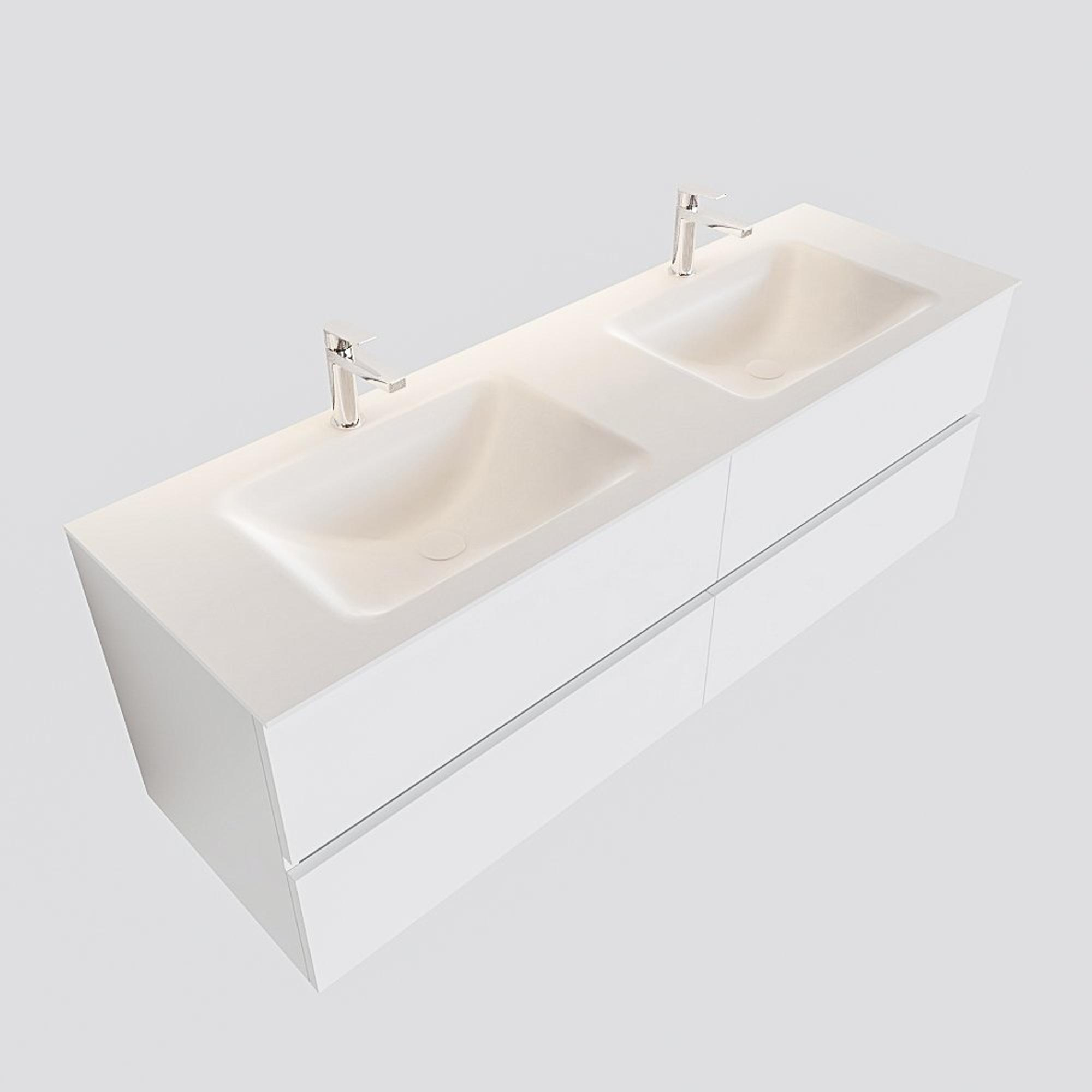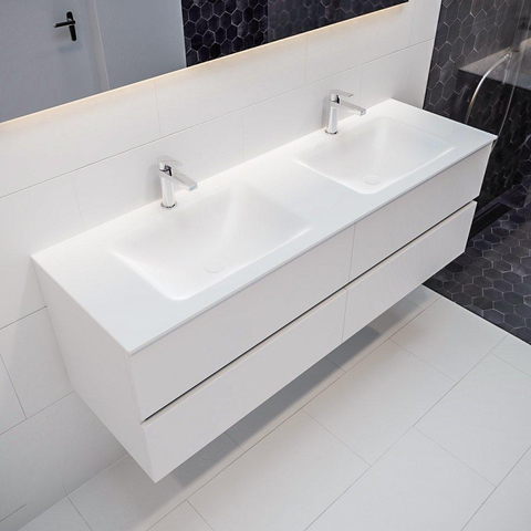 MONDIAZ VICA Badkamermeubelset - 150cm - 4 lades - wasbak Cloud dubbel - 2 kraangaten - solid surface talc
