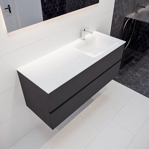 MONDIAZ VICA Badkamermeubelset - 120cm - 2 lades - wasbak Cloud rechts - 1 kraangat - solid surface darkgrey