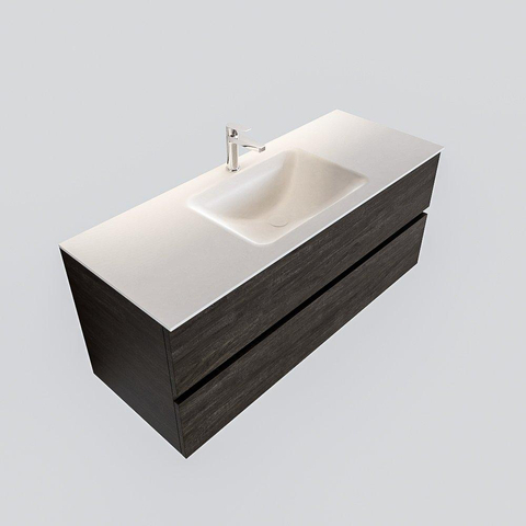 MONDIAZ VICA Badkamermeubelset - 120cm - 2 lades - wasbak Cloud midden - 1 kraangat - solid surface dark brown