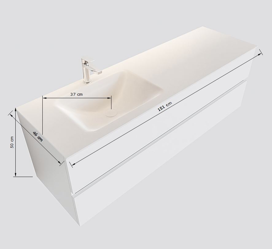 MONDIAZ VICA Badkamermeubelset - 150cm - 2 lades - wasbak Cloud links - 1 kraangat - solid surface washed oak
