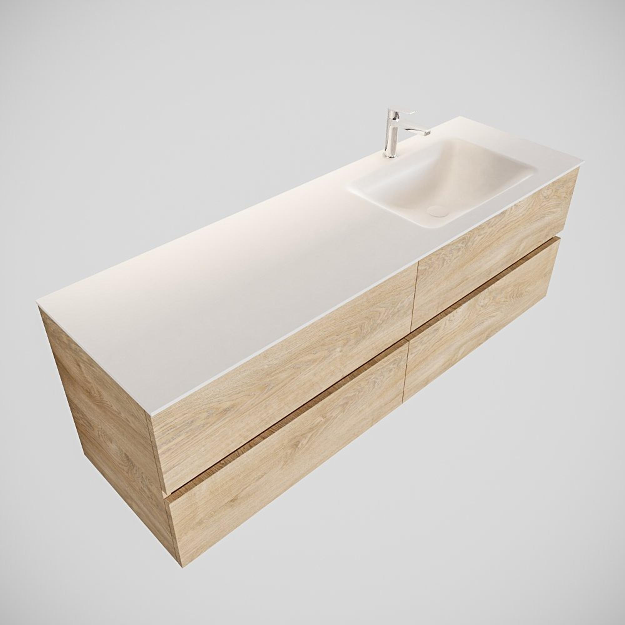 MONDIAZ VICA Badkamermeubelset - 150cm - 4 lades - wasbak Cloud rechts - 1 kraangat - solid surface washed oak