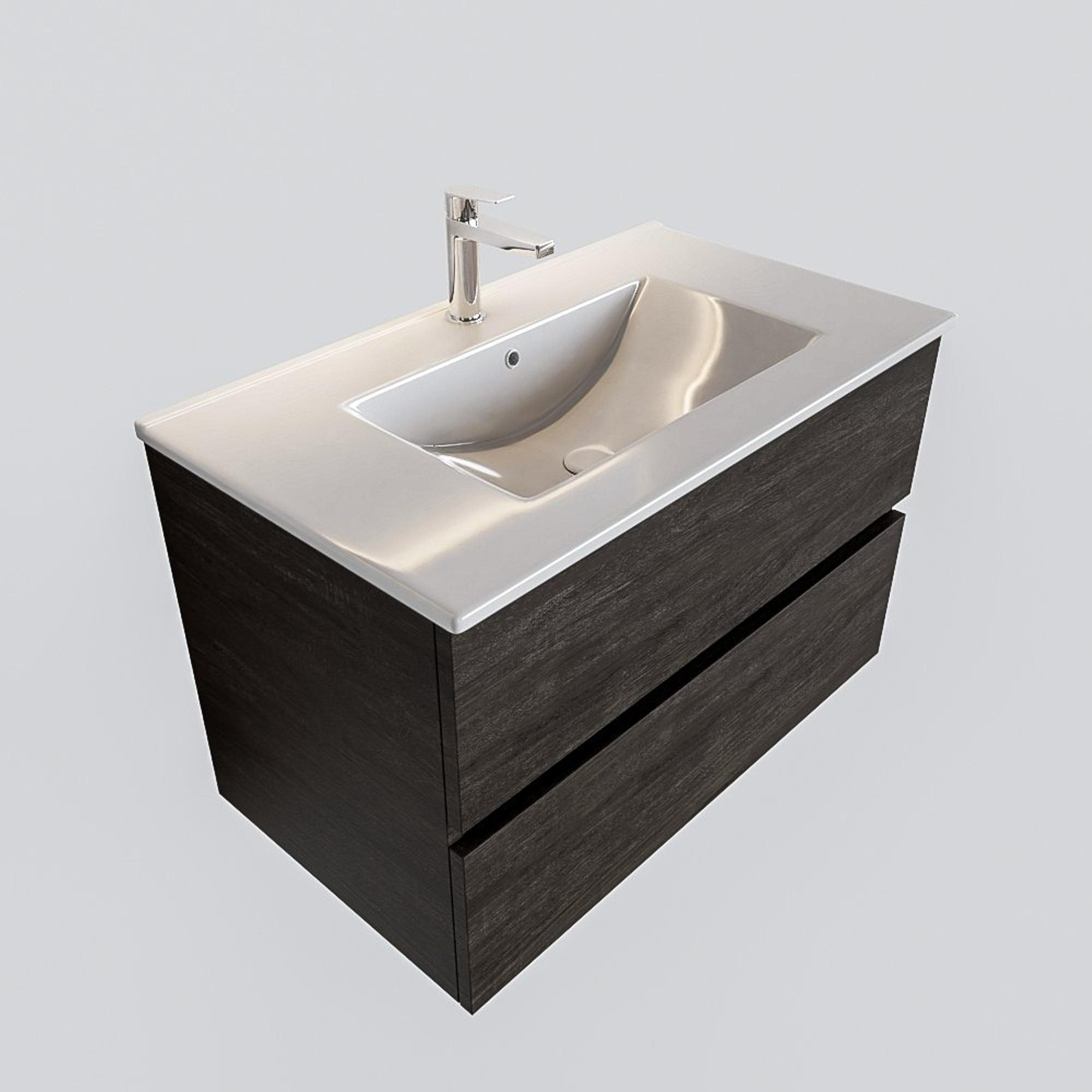 MONDIAZ VICA Badkamermeubelset - 80cm - 2 lades - wasbak Denia midden - 1 kraangat - solid surface dark brown