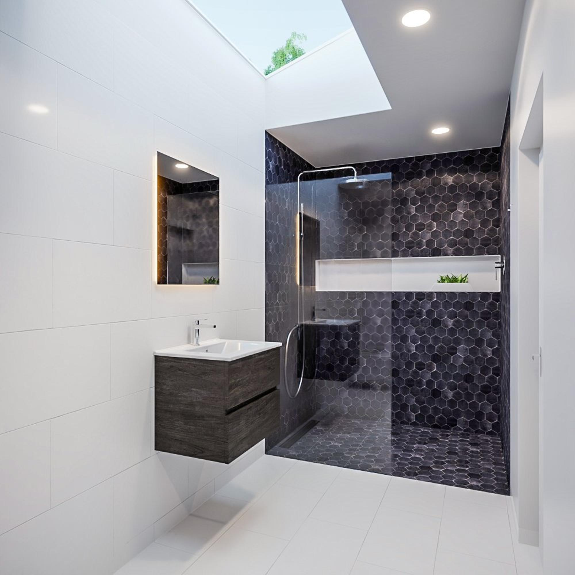 Met zijn strakke lijnen en donkerbruine solid surface afwerking straalt dit badkamermeubelset stijl en klasse uit. De subtiele details en het moderne ontwerp zorgen voor een tijdloze uitstraling die moeiteloos past bij verschillende badkamerstijlen. Het is een ware blikvanger die de sfeer van je badkamer naar een hoger niveau tilt.
