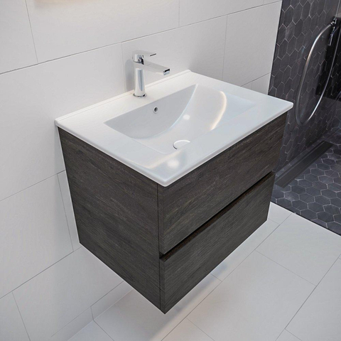 MONDIAZ VICA Badkamermeubelset - 60cm - 2 lades - wasbak Denia midden - 1 kraangat - solid surface dark brown