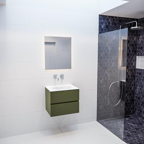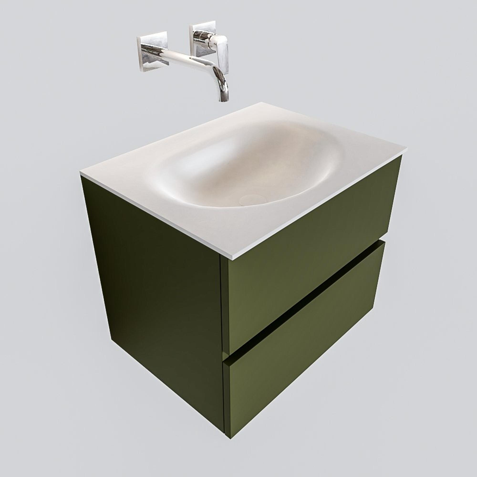 MONDIAZ VICA Badkamermeubelset - 60cm - 2 lades - wasbak Moon midden - 0 kraangaten - solid surface army